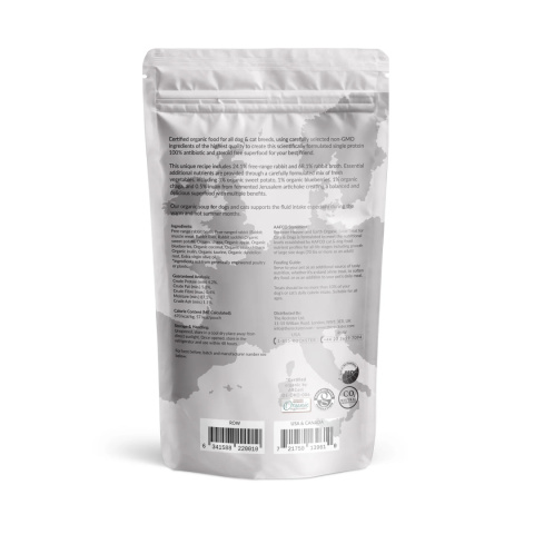 Certyfikowana ekologiczna karma uzupełniająca dla psów i kotów wszystkich ras i w każdym wieku. Starannie wyselekcjonowane składniki najwyższej jakości, niemodyfikowane genetycznie tworzą tą naukowo opracowaną, monobiałkową, w 100% wolną od antybiotyków i sterydów karmę superfood dla Twojego najlepszego przyjaciela