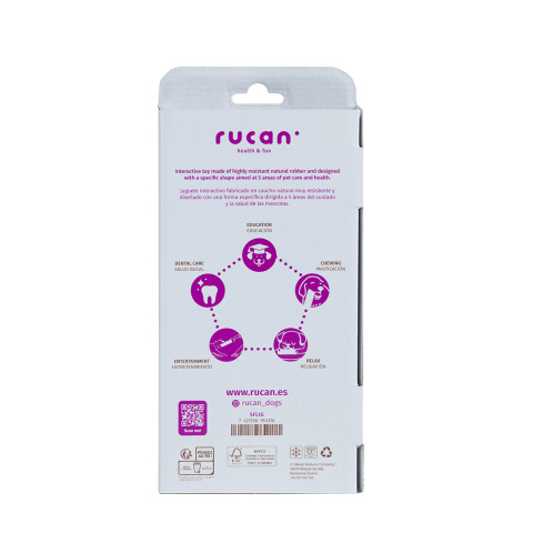 RUCAN Stick 5 można myć w zmywarce, można zamrażać. W przypadku nadgryzienia zabawki zabierz ją psu. W przypadku połknięcia kawałka skonsultuj się z lekarzem weterynarii. Kauczuk naturalny nie jest toksyczny, nie jest strawny, odrywa się na kawałeczki o miękkich krawędziach które nie uszkodzą jelit i zostaną wydalone z kałem.