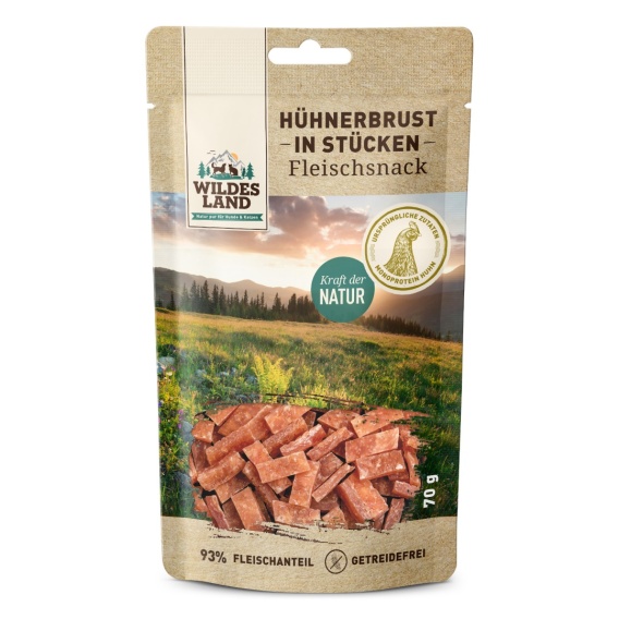 WILDES LAND Hühnerbrust in Stücken - filet z piersi kurczaka w kawałkach - przysmaki mięsne dla psa i kota